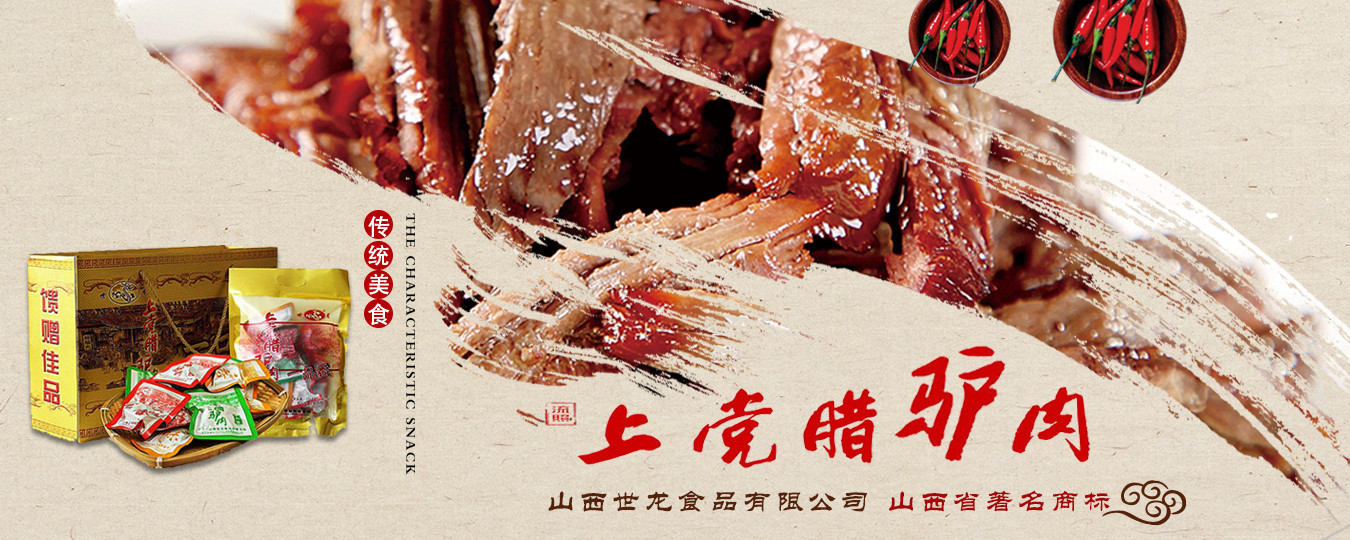 山西世龍食品有限公司是以“世龍”牌上黨臘驢肉系列產(chǎn)品為主導(dǎo),集科研開發(fā)、良種繁育、基地建設(shè)、生產(chǎn)加工、市場營銷于一體的農(nóng)業(yè)產(chǎn)業(yè)化國家重點龍頭企業(yè)、全國農(nóng)業(yè)標(biāo)準(zhǔn)化示范區(qū)、全國食品行業(yè)優(yōu)秀龍頭企業(yè)、山西省農(nóng)業(yè)產(chǎn)業(yè)化重點龍頭企業(yè)、山西省農(nóng)產(chǎn)品加工“513”工程單位、山西省帶動貧困地區(qū)基地建設(shè)重點龍頭企業(yè)、山西省民營畜牧業(yè)示范基地、山西省質(zhì)量信譽(yù)AAA級單位、山西省重合同守信用單位、山西省消費(fèi)者協(xié)會誠信單位、山西省民營科技企業(yè)。